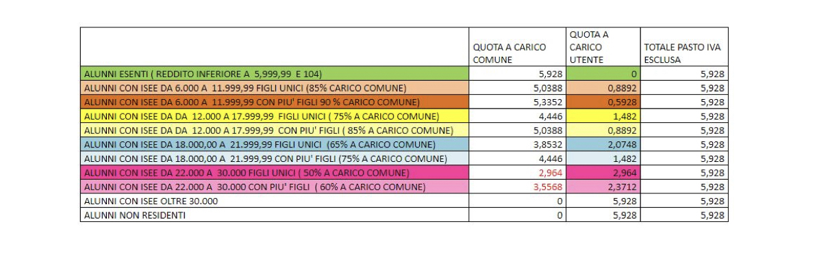 sono state infatti inserite altre tre fasce di Isee e sono state prese in considerazione le famiglie con più figli iscritti alla mensa, aumentando la contribuzione del Comune anche per le fasce di reddito medio.
