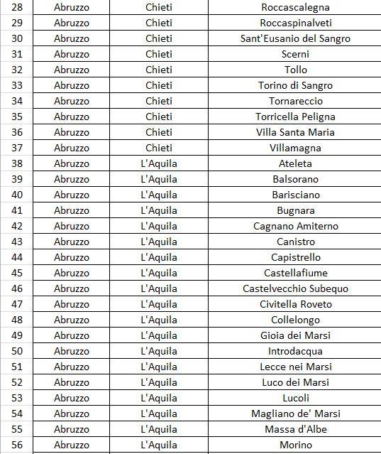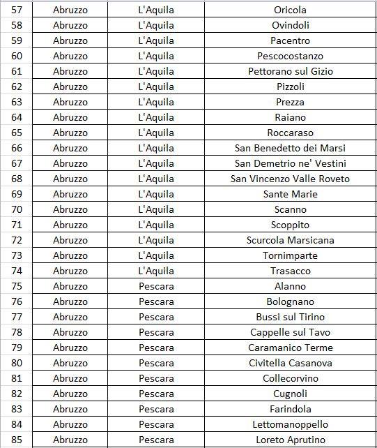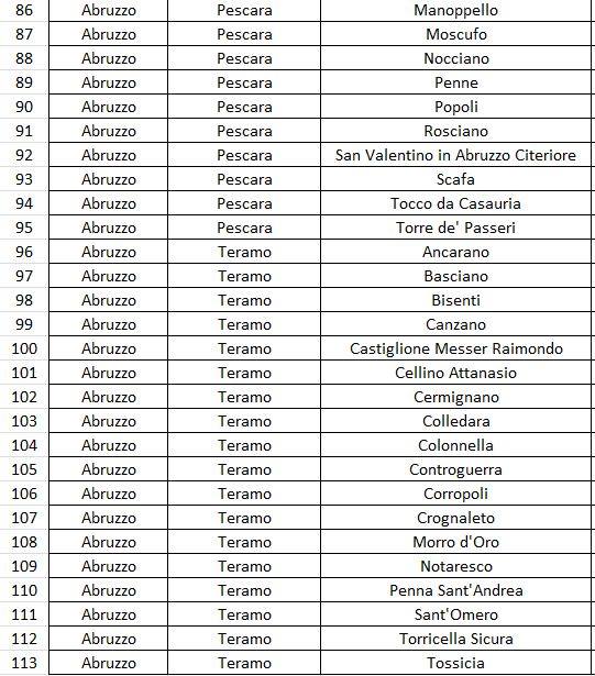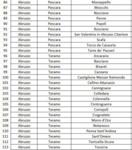 Questi i 113 Comuni della prima fase: