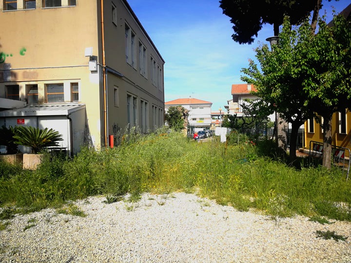 La scuola è la rappresentazione dello spazio pubblico (espressione dello stato, ed in questo caso dell’ amministrazione comunale), il primo edificio pubblico con cui vengono in contatto i bambini di Tortoreto. La scuola dovrebbe essere accogliente, ordinata, sicura. Le foto ritraggono un degrado urbano e sociale mai visto al centro di Tortoreto Lido, tra con un metro di erba in bella vista, rivolta verso la principale Piazza Matteotti. Il