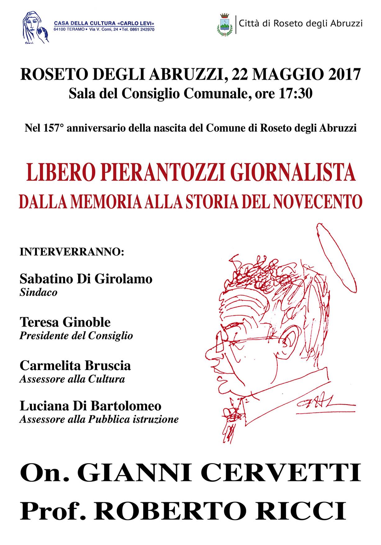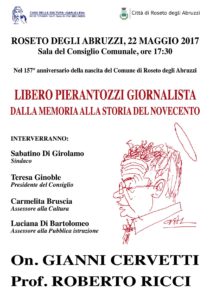 Lunedì 22, alle 17,30, nella sala consiliare “Libero Pierantozzi – Dalla memoria alla storia del Novecento” convegno con il quale l’amministrazione comunale intende ricordare un illustre concittadino.